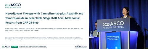 [1]Lili Mao, et al. Neoadjuvant camrelizumab plus apatinib and temozolomide for resectable stage II/III acral melanoma: The CAP 03-NEO trial. 2025 ASCO, abstract 9512.